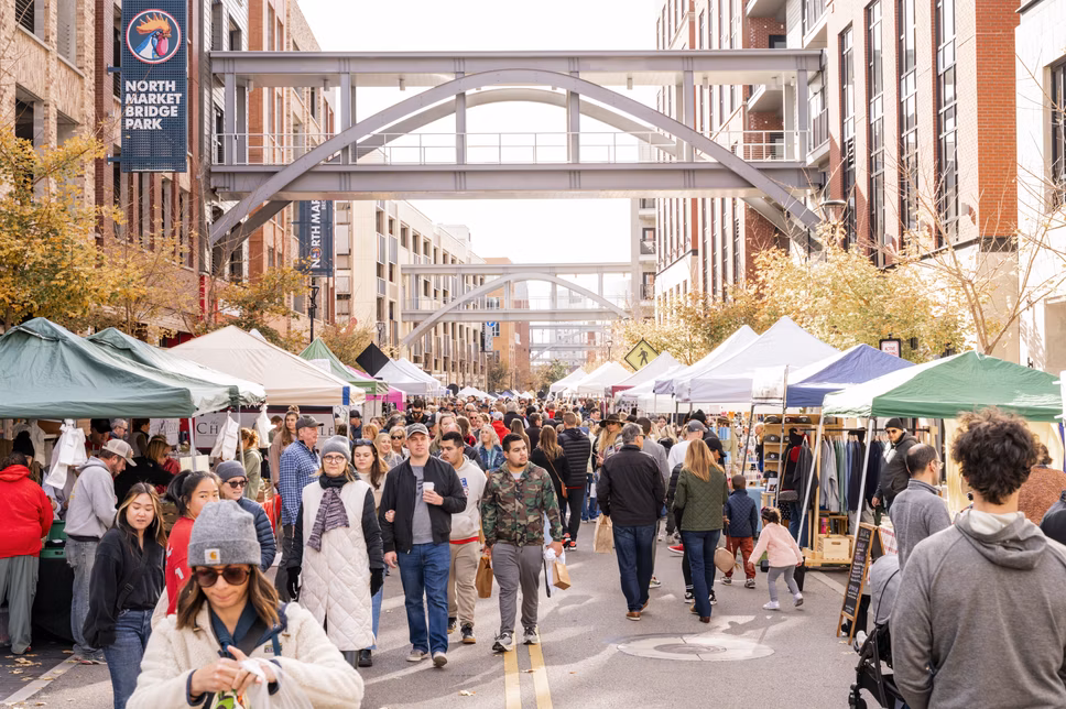 A park will also be located in the center of the block, becoming the largest green space we've built at Bridge Park so far.